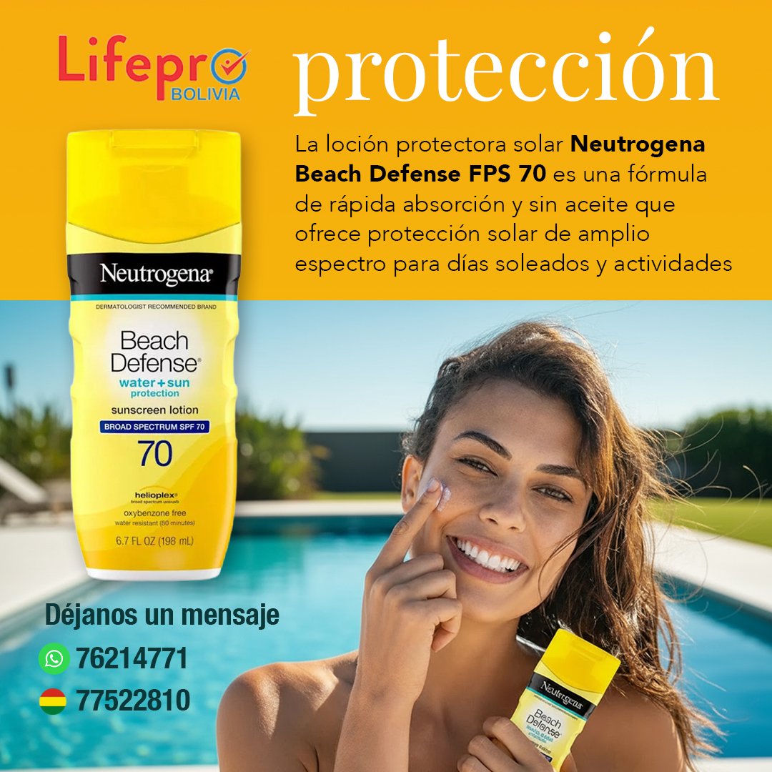 Loción Neutrogena Beach Defense SPF 70 (protector solar)